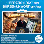 - Börse Düsseldorf: Liberation Day als Börsen-Unwort 2025 gewähltDüsseldorf, 13. Januar 2026 – Der „Liberation Day“ bleibt als prägendes Unwort der Börsen- und Finanzwelt für das Jahr 2025 in Erinnerung. Zu diesem einhelligen Urteil kam sowohl die Experten-Umfrage unter den Mitarbeitenden der Börsen, Market Maker und Gremien, als auch das öffentliche Online-Voting. Auf das Gewinnertreppchen schafften es des Weiteren die Kandidaten „Big Beautiful […]
