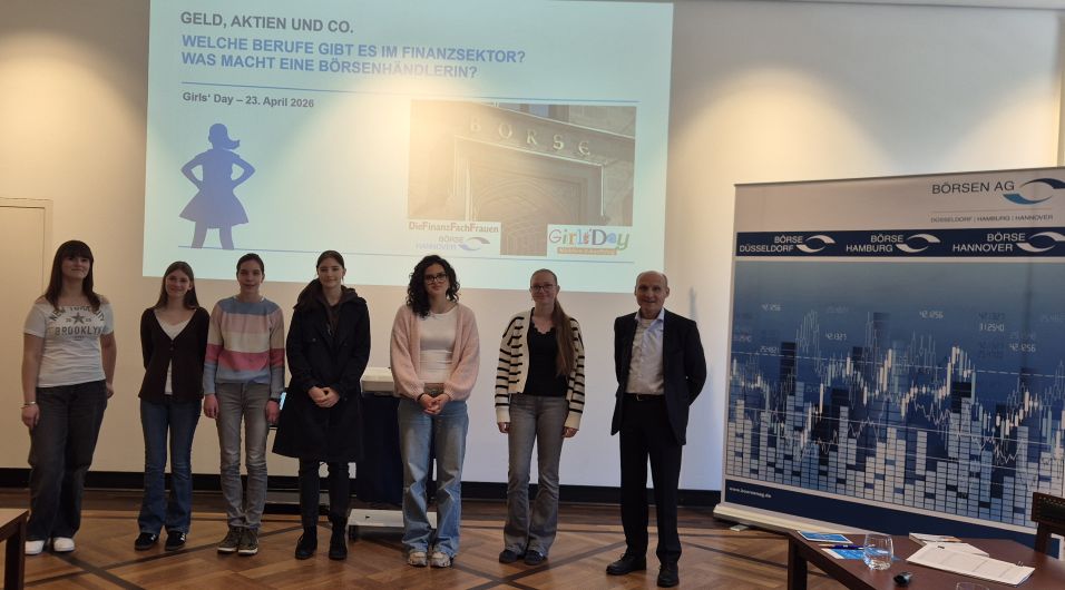 Im vierten Jahr der Kooperation mit Die FinanzFachFrauen versammelten sich am Girls‘ Day am 23. April 2026 mehr als 50 Schülerinnen an den Börsen in Düsseldorf, Hamburg und Hannover, um mehr über die Finanzwelt und deren Berufe zu erfahren.